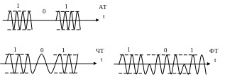 Различают: амплитудную телеграфию (АТ).когда сигнал не передается, то называют телеграфию с пассивной нагрузкой.