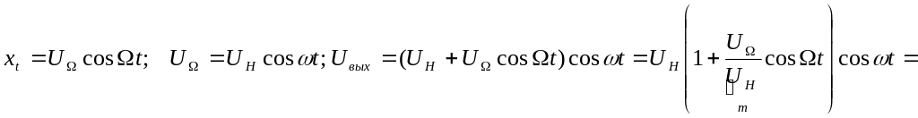 При модуляции чистым тоном имеем несущее гармоническое колебание с амплитудой Uн и 2 боковых составляющих mUн/2: