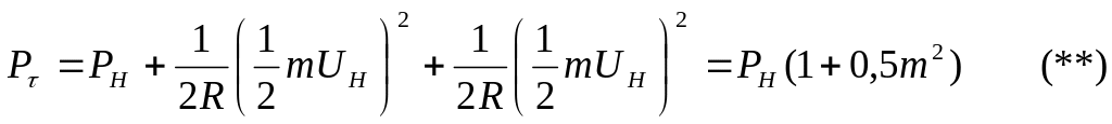 При m=1; Рмакс в 4 раза выше Рн; выходные каскады должны обеспечивать в 4 раза запас по мощности.