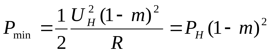 - амплитуда Uвых достигает минимального значения – режим минимальной мощности: U=Uн(1-m) – III.