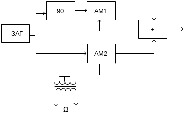 - на векторном сложении амплитудно-модулированных или двухполостных модулированных сигналов.