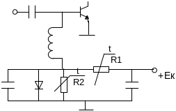 В транзисторных генераторах напряжение отсечки зависит от t,С. Поэтому схема питания должна учитывать температурную стабилизацию. В маломощных каскадах – в эмиттерную цепь вводят RC-цепочку.