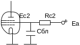 В маломощных генераторах питание экранирующей сетки осуществляется от источника питания Eа