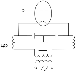 Для избежания потерь на проводах, включают дроссели блокирующие прохождение тока в источник накала.