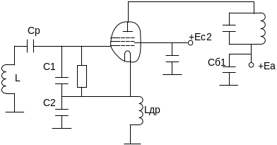 Питание базы выполняется автоматически через L. При работе АГ в ключевом режиме включается Ср, чтобы напряжение базы было небольшим, а база питается через делитель: