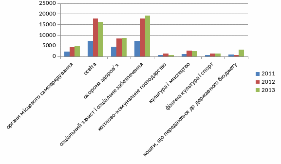 За даною таблицею графіками можемо бачити, що з Спеціального фонду кошти які передаються із державного бюджету не виділяються. Також ми можемо бачити, що у 2011 та 2013 роках спеціальний фонд не виділяв кошти у органи місцевого самоврядування, так як і на соціальний захист у 2011. Загалом у 2012 року надійшло найбільше видатків із спеціального фонду.