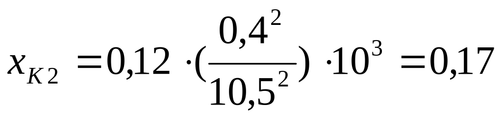 2.5.10 Для розрахунку струму к.з. на шинах 0,4 кВ (точка K2) накреслюється схема заміщення для цієї точки і опори зводяться до напруги 0,4 кВ. Розрахунок ведеться в міліомах.
