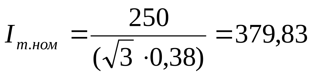 2.5.15 Для визначення опору автоматичного вимикача і шин розраховується струм на боці НН трансформатора, А: