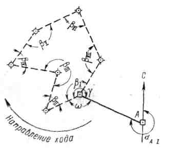 п - исправленный, вправо по ходу лежащий угол между этими сторонами.