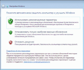 Выбираете параметры защиты Windows, в большинстве случаев подойдет первый вариант — «Использовать рекомендуемые параметры»: