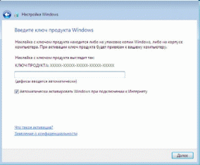 В следующем окне необходимо ввести серийный номер вашей копии Windows 7: