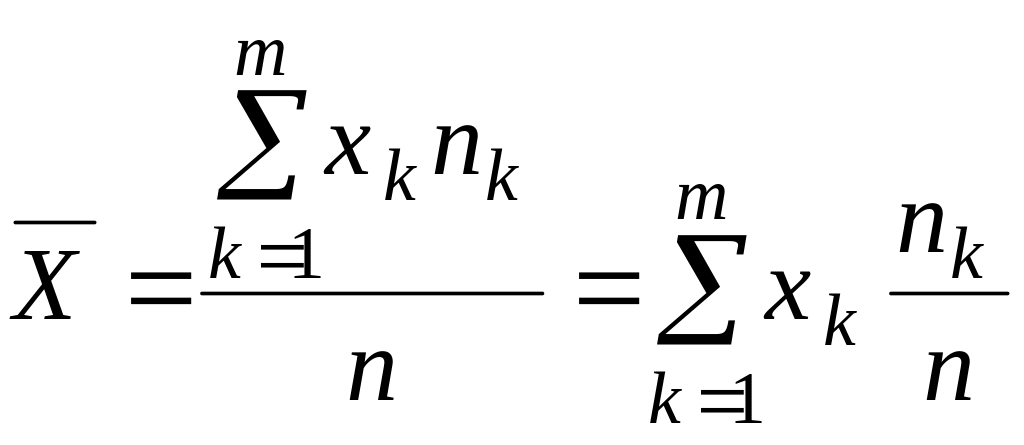 Середнє арифметичне значення випадкової величини X за умови‚ що остання набуває n1 разів значення x1, n2 - значення x2 і т.д.