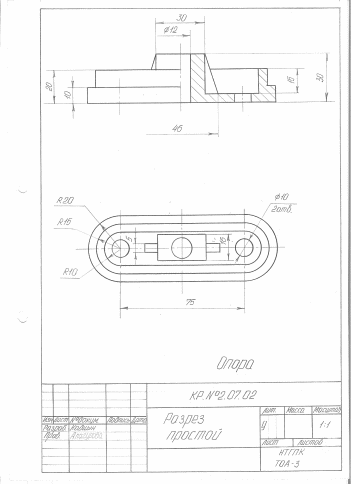 Методические указания. Для выполнения этого графического листа, первой работы по машиностроительному черчению, необходимо изучить темы «Системы расположения изображений», «Основные виды», «Разрезы», «Простые разрезы - вертикальные и горизонтальные».