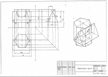 Содержание листа: На листе выполнить комплексный чертеж взаимного пересечения двух призм, изометрию их из сборника, стр. 99, масштаб 1:1.
