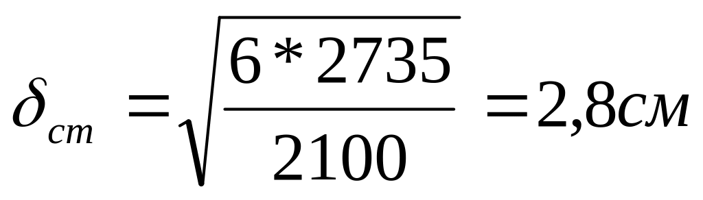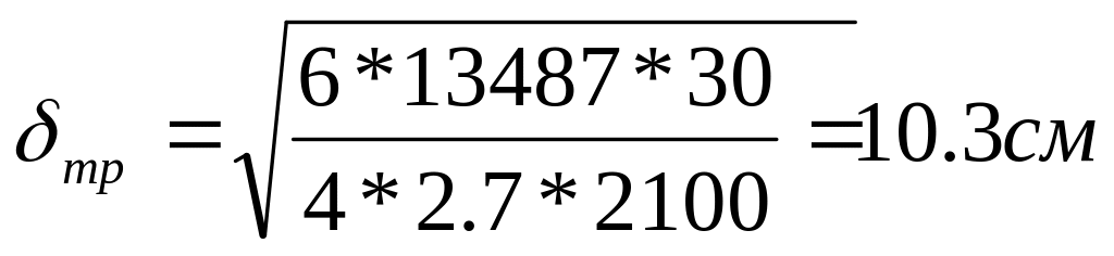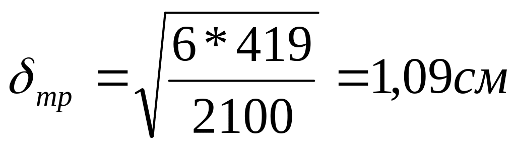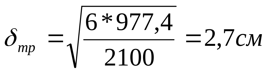 Товщину опорного листа знаходимо з умови згину консольних ділянок довжиною 7см від реактивного тиску