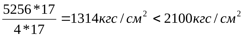 Шви сприймають зусилля на зріз: 5256*0,561=2950кгс, та стиск 5256*0,827=4350кгс.