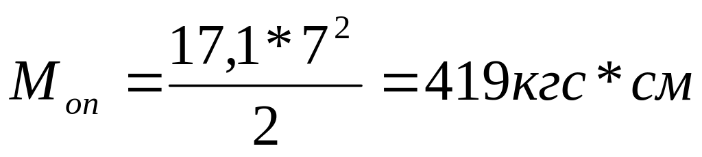 Горизонтальний лист перевіряємо на згин від опорного реактивного тиску стойки