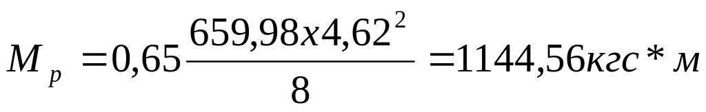 Розрахунковий згинаючий момент в панелі верхнього поясу