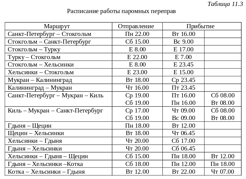 Студент может также воспользоваться другими данными о движении паромов, отличными от приведенного расписания и более подходящими для организации комбинированных перевозок по разрабатываемому маршруту.