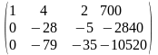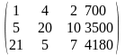 Из условия задачи составим таблицу. По данной таблице составим систему. Составим матрицу, и приведем к треугольному виду используя элементарные преобразования и решим ее обратным ходом метода Гаусса.