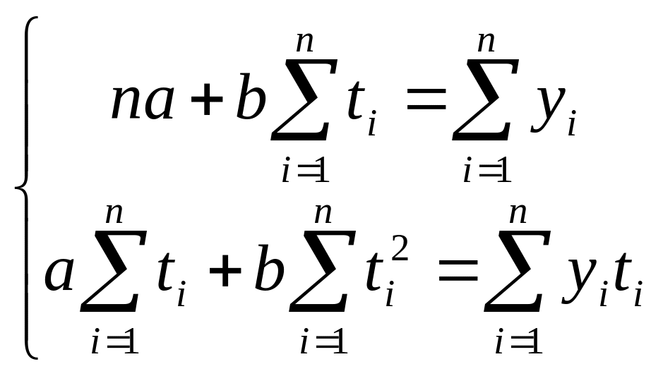 Для выравнивания ряда динамики по прямой используется уравнение:
