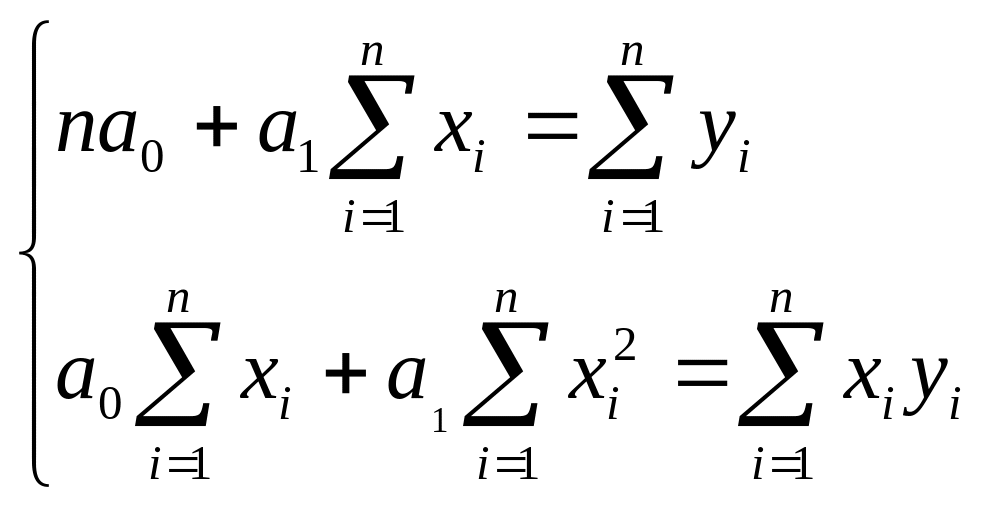Система нормальных уравнений для нахождения параметров линейной парной регрессии методом наименьших квадратов имеет следующий вид: