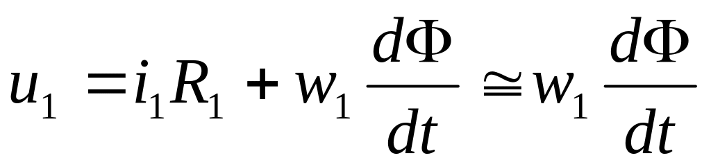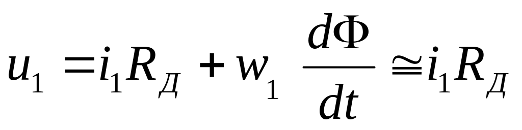 Таким чином, первинна обмотка вмикається до джерела струму. На рис. 1.18,б наведені криві зміни струму i1 у первинній обмотці та напруги u2 у вторинній обмотці, яка при холостому ході дорівнює ЕРС. Напруга на вторинній обмотці