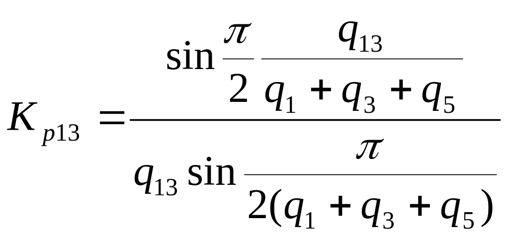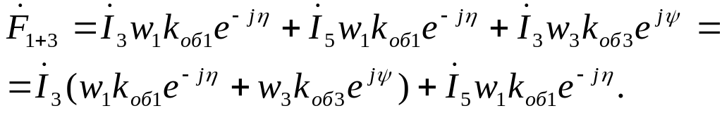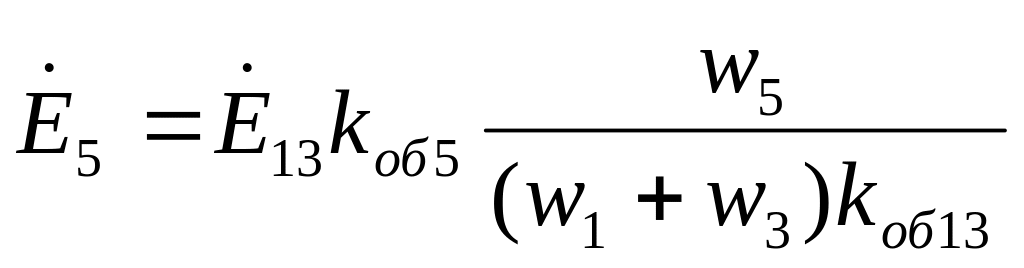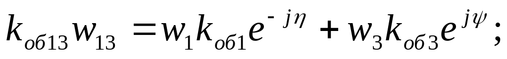 Обмоткові коефіцієнти фаз 1, 3, 5 визначаються, як і для звичайної трифазної обмотки з фазною зоною 60°. Обмотковий коефіцієнт фіктивної фази 13, яка займає фазну зону 120°, близький до 0,8 , оскільки коефіцієнт розподілу для неї
