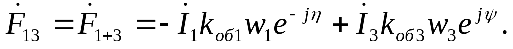 Двигунові фази 1 та 3 замінюються фіктивною фазою 13, ефективне число витків якої