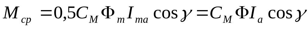 Таким чином, момент Мср при живленні від мережі змінного струму, крім потоку та струму Іа, визначається кутом γ між векторами цих величин. Для одержання найбільшого обертаючого моменту необхідно, щоб cosγ=1, γ=0. Тому при паралельному або незалежному збудженні необхідні спеціальні фазозсовуючі пристрої. При послідовному збудженні потік m завжди майже співпадає зі струмом Іmа, тобто кут γ малий (рис. 13.22)
