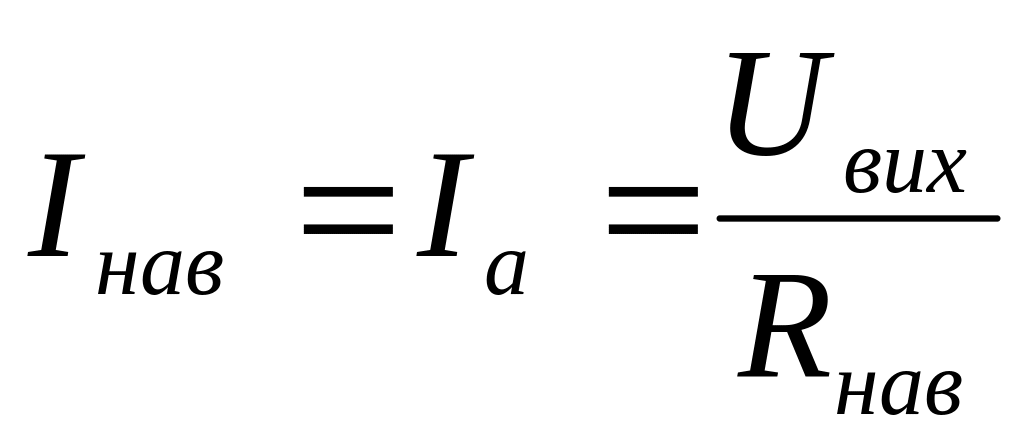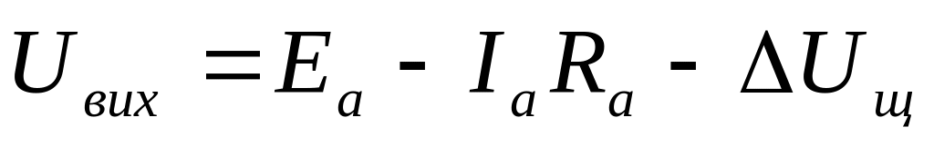 При вмиканні на затискачі якоря навантаження (наприклад, вимірювальний прилад) напруга на затискачах якоря виражається рівнянням:
