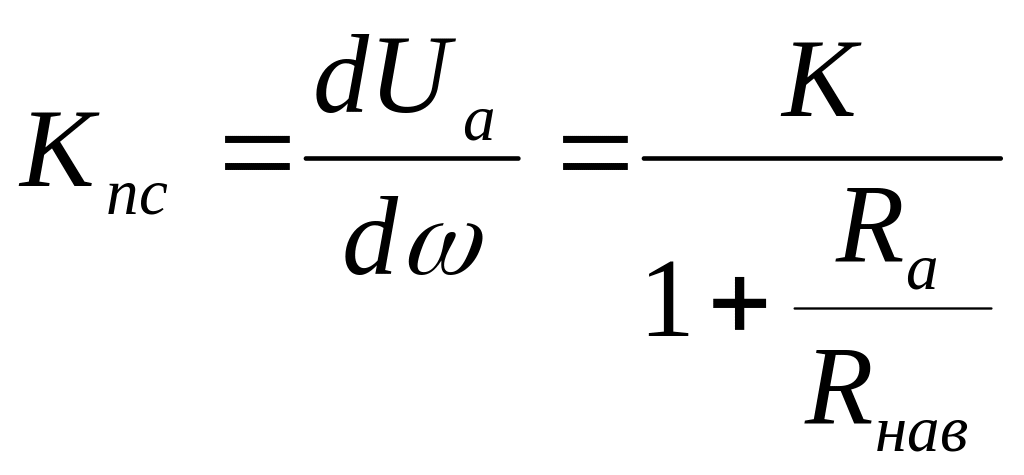 Де Кnc – коефіцієнт підсилення, який може бути розрахований з формули (17.9) після заміни Uвих на Uа. Нехтуючи розмагнічуючою дією реакції якоря, тобто вважаючи Кр≈0. Одержимо: