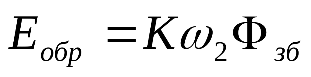 ЕРС Еобр є лінійною функцією швидкості обертання ротора й пульсує з частотою зб, тобто – з мереженою частотою ƒ. Під дією цієї ЕРС в провідниках обмотки ротора проходить струм Іобр, який створює магнітний потік г. Цей потік спрямований по осі генераторної обмотки Г й прямопропорційний Іобр та, відповідно, - 2. При цьому г пульсує з частотою ƒ. В генераторній обмотці г наводить трансформаторну ЕРС: