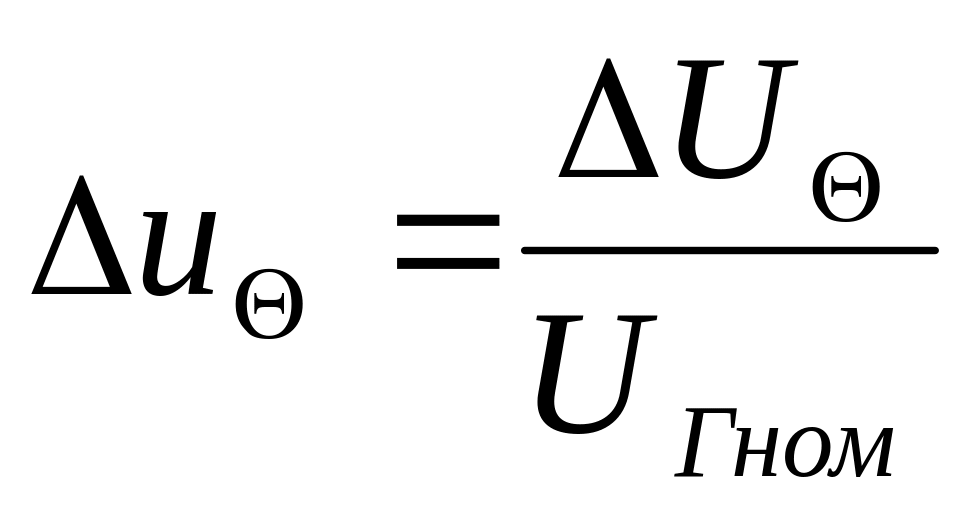 1. Відносна амплітудна похибка ЕРС генераторної обмотки від зміни швидкості, температури, напруги й частоти. Вона визначається як відношення максимальної різниці напруг ∆Uі реального й ідеалізованого асинхронного тахогенератора до номінального значення напруги генераторної обмотки: