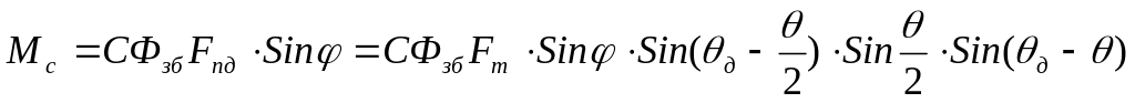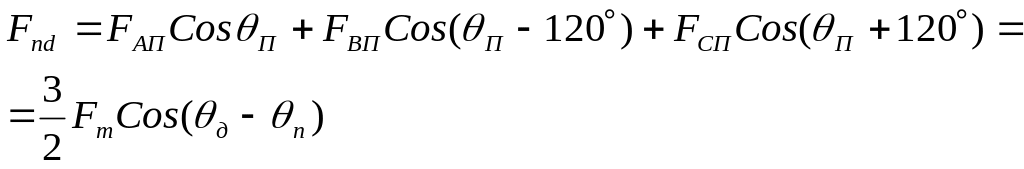 З формули (16.62) витікає, що при θд=±θп струм І=0, тобто за один оберт сельсин має два стійких положення, які відрізняються одне від одного на 2θд. Тому ротор приймача може повертатись при повороті ротора датчика в той чи інший бік. Підставляючи у (16.62) з формули (16.12), одержимо: