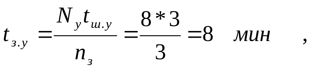 tш.у – время заряжания 1 шпура, tш.у=2…3 мин,