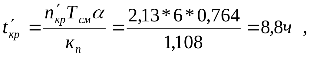 tкр=tн.кр+tс.кр=1,09+1,12=2,21 ч;