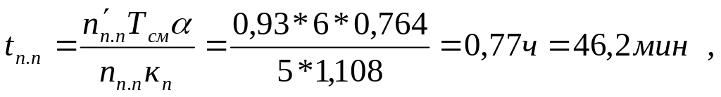 где tп.с – время приема–сдачи смены, tп.с=12 мин,