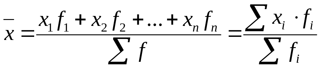 Если исследователь имеет дело с данными в виде интервальных рядов распределения, то средняя взвешенная величина определяется: