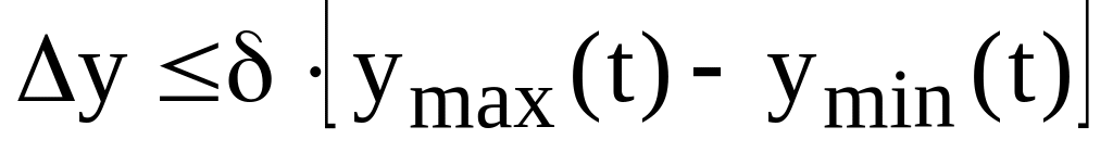 Δy – разрешающая способность сигнала или шаг квантовая. Пока сигнал не изменился на величину Δy преобразователь повторяет предыдущее значение. Только после достижения сигналом нового уровня преобразователь переключает новое значение. Шаг квантования определяется требуемой точностью измерения и обеспечивается разрешающей способностью преобразователя, чем она выше, тем меньше шаг квантования. Шаг квантования зависит от допустимой относительной погрешности измерения δ: