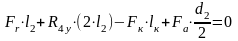 Пример составления уравнений равновесия для ведомого вала в плоскости (рис. 12):