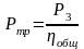 – общий КПД привода.