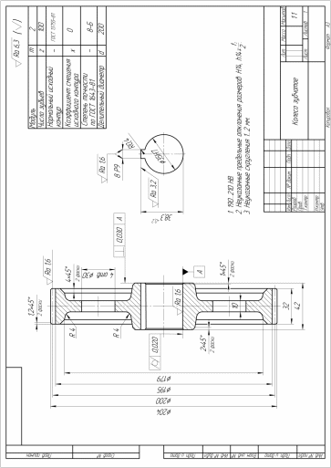 Пример выполнения рабочего чертежа прямозубого колеса.