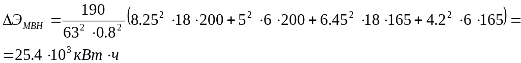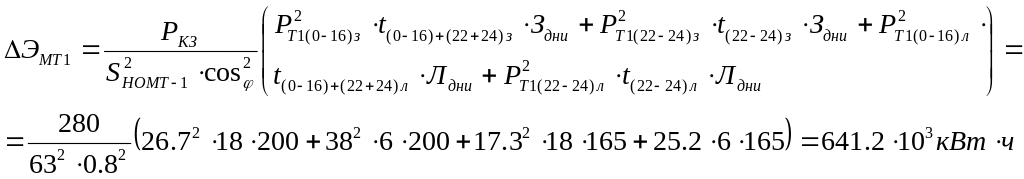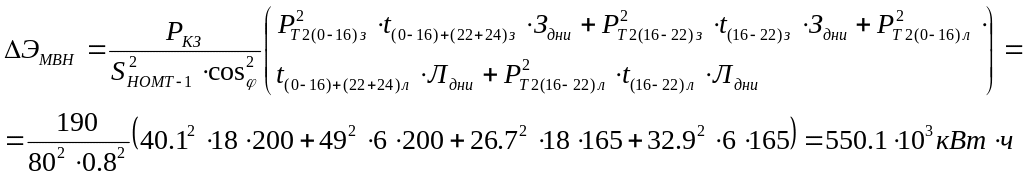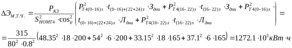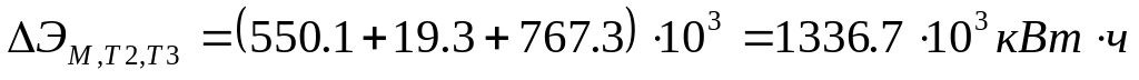 Годовые потери энергии в меди найдем, принимая, что обмотки НН загружены одинаково, по формуле для двухобмоточного трансформатора