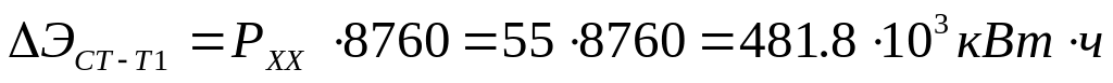 Трансформатор ТРДН-63-.36,75/11/11, Годовые потери энергии в стали (трансформатор Т-1).