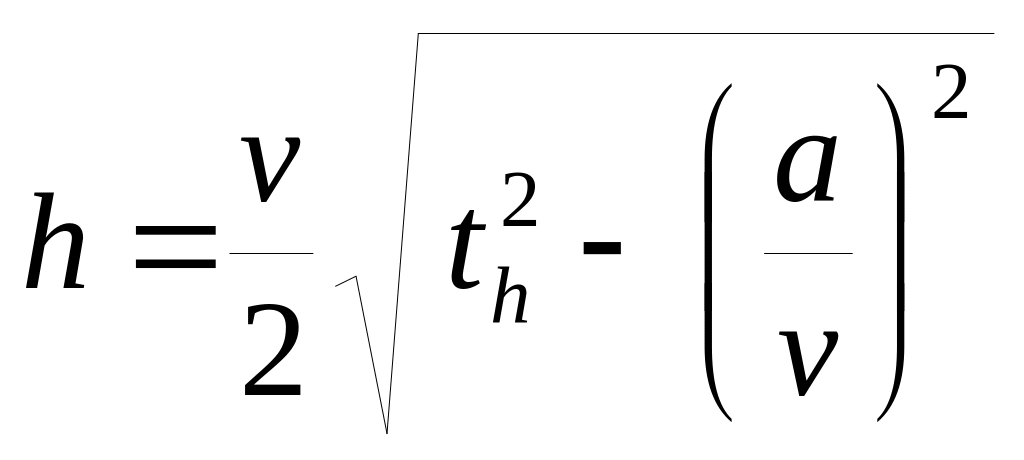 Глубина трещины в бетоне согласно схеме представленной на рисунке 1.3 определяется в зависимости от скорости распространения ультразвука, время распространения ультразвука на участке бетона с трещиной и базы прозвучивания по формуле 1.9