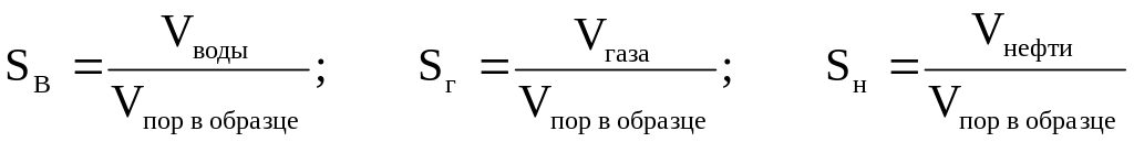 где VВ, VН, VГ – соответственно объёмы воды, нефти и газа в поровом объёме (Vпор) породы.
