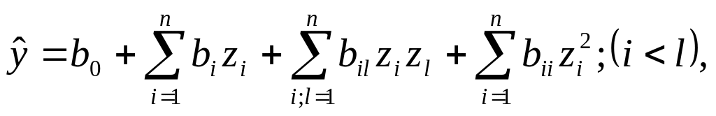 Для отримання квадратичних моделей користуються результатами експерименту, проведеного за планом другого порядку. Якщо виконуються умови: 1) помилки спостережень розподілені по нормальному закону з нульовим середнім і кінцевою дисперсією; 2) вхідні змінні вимірюються без помилок; 3) спостереження незалежні, — то для обробки експериментальних даних застосовують метод регресійного аналізу, причому обчислювальна процедура оцінювання невідомих коефіцієнтів рівняння регресії заснована па методі найменших квадратів.