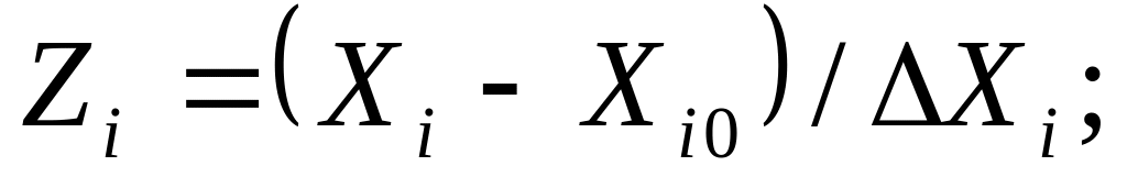 При плануванні експерименту проводять перетворення розмірних керованих незалежних чинників в безрозмірні, нормовані: