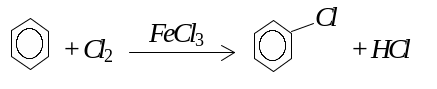 Для отримання моногалогенпохідних бензену, треба використовувати в якості каталізаторів “кислоти Льюіса” (AlCl3, AlBr3, FeCl3):